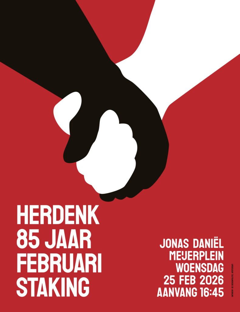 Een lustrumjaar verdient een affiche en een campagne. Grafisch designteam Gorilla heeft voor ons een campagne ontworpen ‘opstaan voor een ander’. Naast een in het oog springend affiche zal tram 14 geheel in stijl van de campagne rondrijden. Tijdens de Februaristaking speelden tramconducteurs een cruciale rol; hun staking maakte in één oogopslag duidelijk dat de stad in verzet was, wat bijdroeg aan de massale deelname.